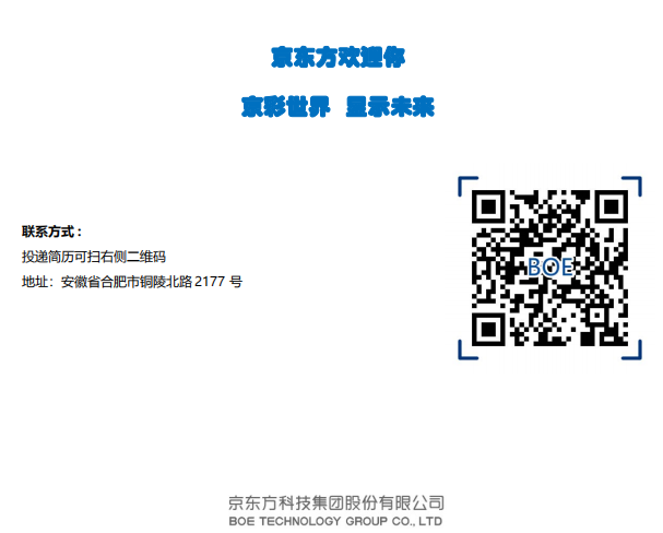 公司正处于快速发展期,渴求更多的优秀人才加盟京东方,我们将为您提供高层次的事业平台、广阔的发