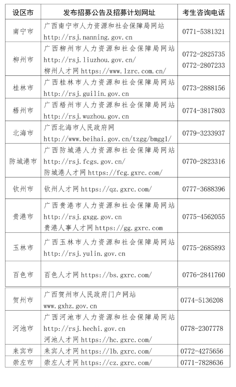 具体事宜可进入广西“三支一扶”网(http://szyf.gxrc.com)查询政策或向各市“三支一扶”办公室电话咨