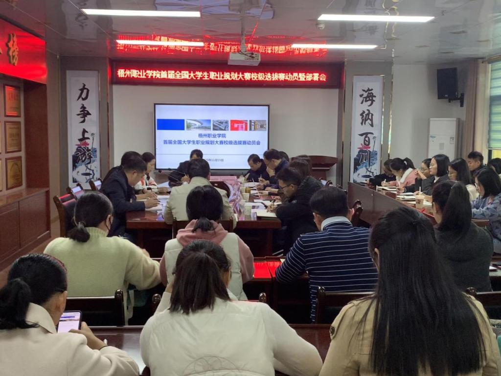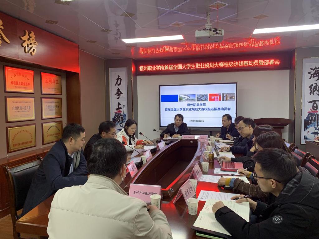 为贯彻落实党中央、国务院关于高校毕业生就业工作的决策部署,按照教育部、区教育厅关于举办首届全国大学生职业规划大赛的通知要求,就加强beat365生涯教育和就业指导,增强大学生生涯规划意识,指导其及早做好就业准备,促进beat365毕业生高质量充分就业,11月15日下午,学院召开beat365英国官网网站首届全国大学生职业规划大赛校级选拔赛动员暨部署会,会议由实习就业指导中心主任林智东主持,副校长梁恩出席会议并作重要讲话,学生工作处和各二级学院负责人、《大学生职业规划与就业指导》全体任课教师及实习就业指导中心全体人员参加会议。