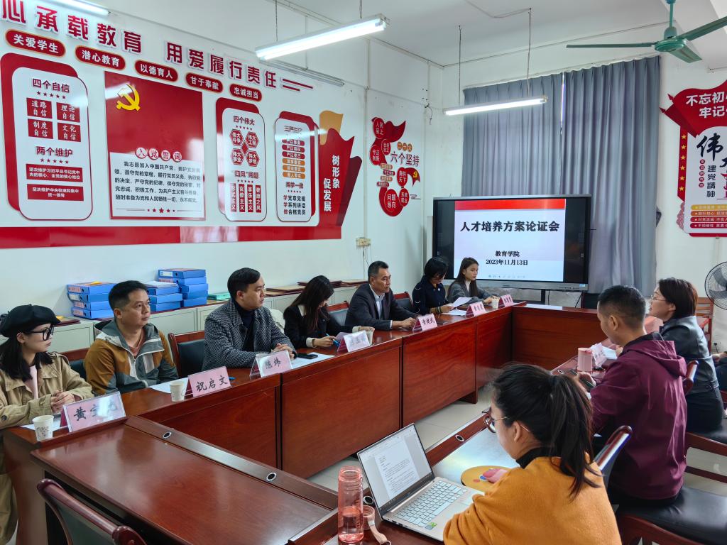 根据《广西普通高等教育专升本考试招生工作实施办法》,beat365各专业要在2022级、2023级人培中增加语文公共选修课或数学公共选修课,总学时48学时,开课时间第四学期。11月13日下午15:00,教育学院邀请行业企业专家、同行、校内外一线教师和学生代表等对人才培养方案进行论证,共邀请到来自梧州学院黄健武教授、广西众意教育科技有限公司陈玉婷总经理、 梧州聚生态托育园黄肖霞园长等7人莅临会议现场,共同研讨人培方案(修订),献言献策,内容涉及培养目标、课程体系设置、实践教学体系、就业行业与岗位调研情况、产教融合等方面,对照上一版人才培养方案进行了对比,与会专家等逐个进行了点评并提出了整改意见。