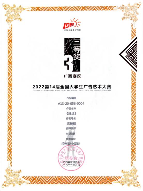 全国大学生广告艺术大赛广西赛区三等奖等奖作品