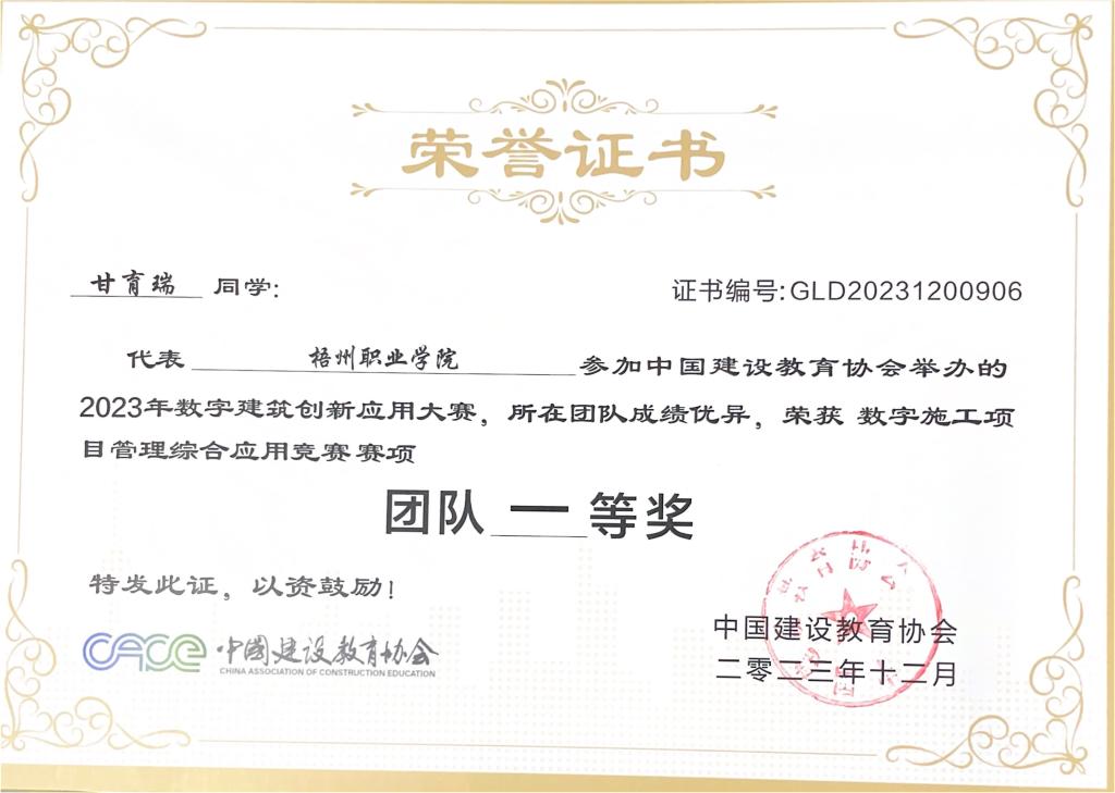 2023年数字建筑创新应用大赛-数字施工项目管理综合应用竞赛赛项-团队一等奖