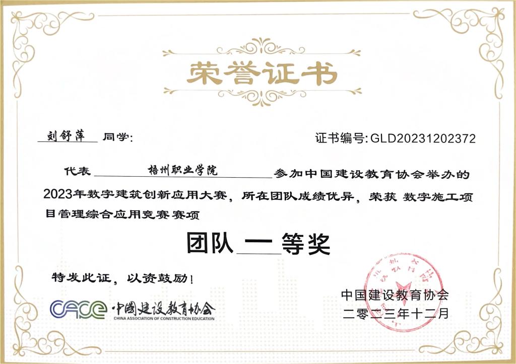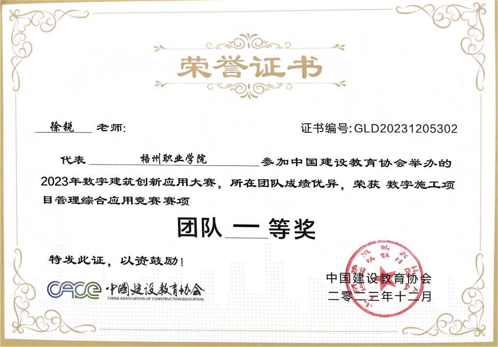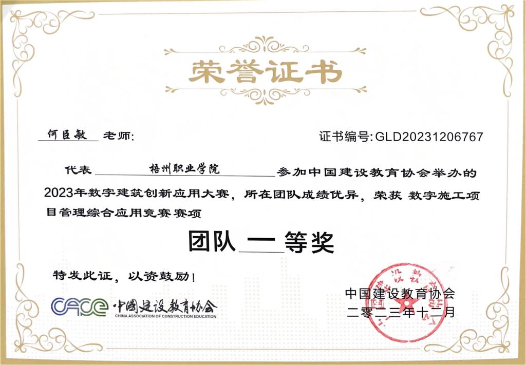 2023年数字建筑创新应用大赛-数字施工项目管理综合应用竞赛赛项-团队一等奖