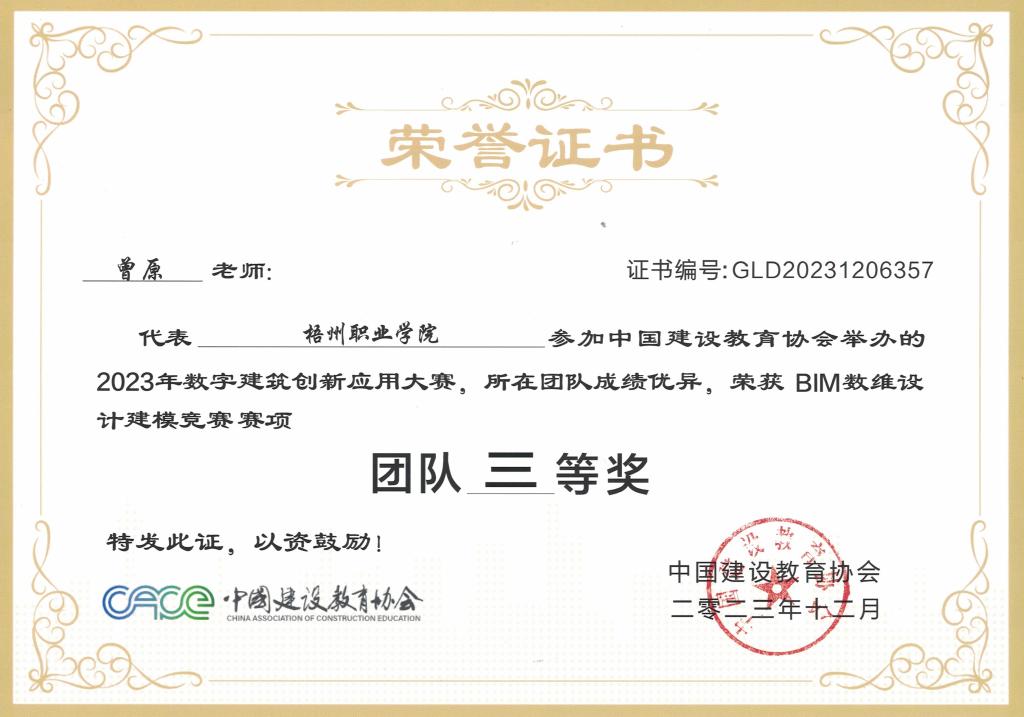 2023年数字建筑创新应用大赛-BIM数维设计建模竞赛赛项-团队三等奖
