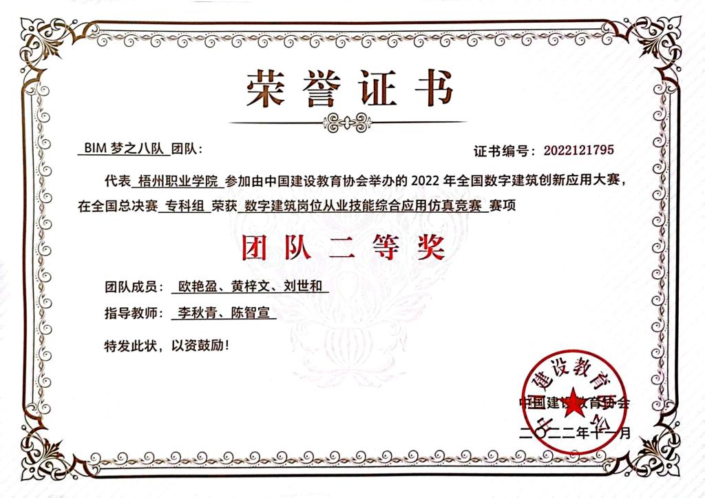 2022年全国数字建筑创新应用大赛-数字建筑岗位从业技能综合应用仿真竞赛-团队二等奖