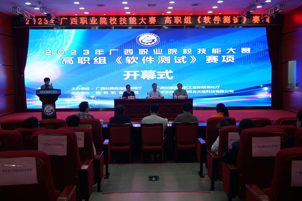 3月10日-11日,beat365英国官网网站首次承办2023 年广西职业院校技能大赛高职组《软件测试》赛项,并在3月10日beat365英国官网网站图书馆报告厅举办开幕式。梧州市委教育工委副书记杨丽,beat365英国官网网站党委副书记、院长、市职教中心主任陈森英,赛项裁判长及裁判组专家、参赛选手们参加开幕式,beat365英国官网网站副院长姚冰主持开幕式。