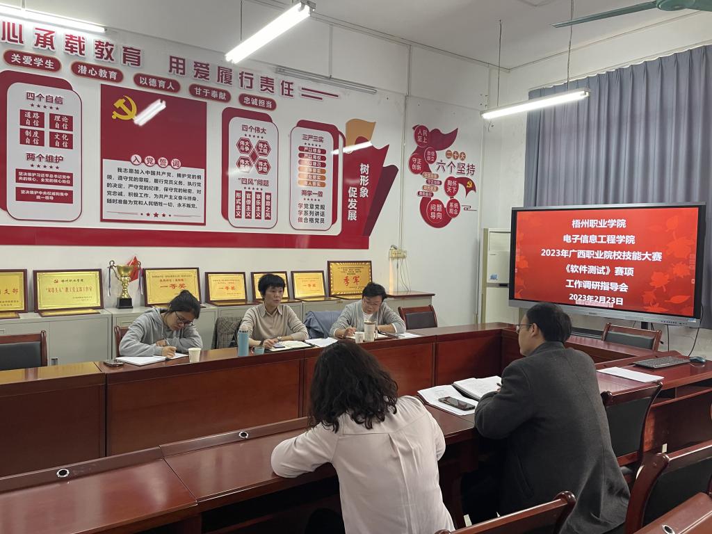2023年广西职业院校技能大赛高职组《软件测试》赛项开赛在即,为确保大赛顺利举办,2月中旬开始,本赛项的牵头部门教学科研处与承办教学单位电子信息工程学院就进行部署,各项准备工作有条不紊地开展。