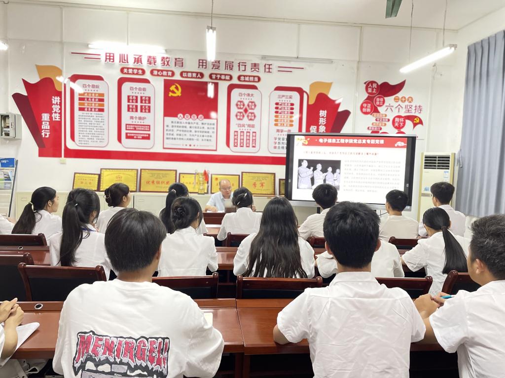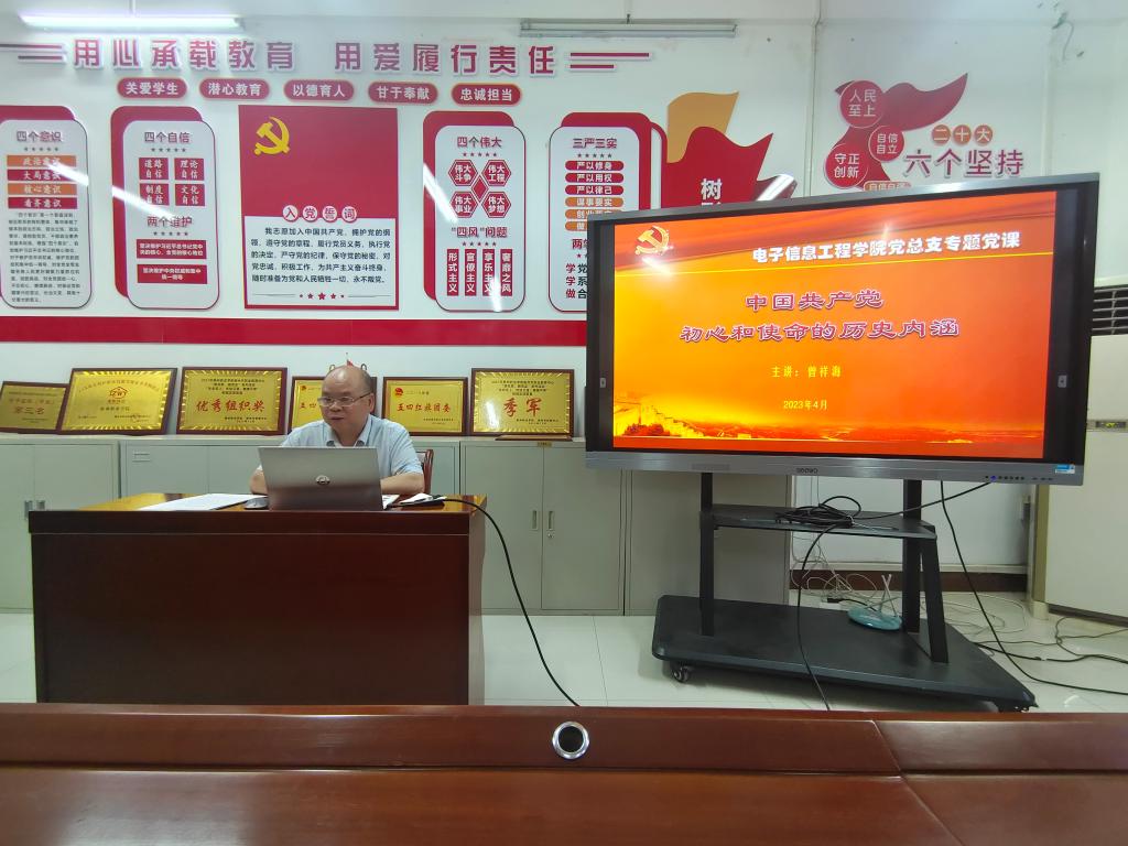 2023年5月23日,电子信息工程学院举行入党积极分子专题党课学习宣讲会,曾祥海书记以《中国共产党初心使命的内涵》为主题进行授课。电子信息工程学院党总支学生支部全体入党积极分子参加。