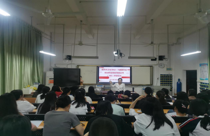 2022年上半年,我部举办健康财富规划和失智老年人照护两个“1+X”职业技能等级证书项目的培训与考评工作,推选了10位老师参加师资培训。其中,5月28日健康财富规划职业技能等级证书考评,200名学生参加,200人通过考核,通过率高达100%;6月18日失智老年人照护职业技能等级证书考评,100名学生参加,90人通过考核,通过率达90%。