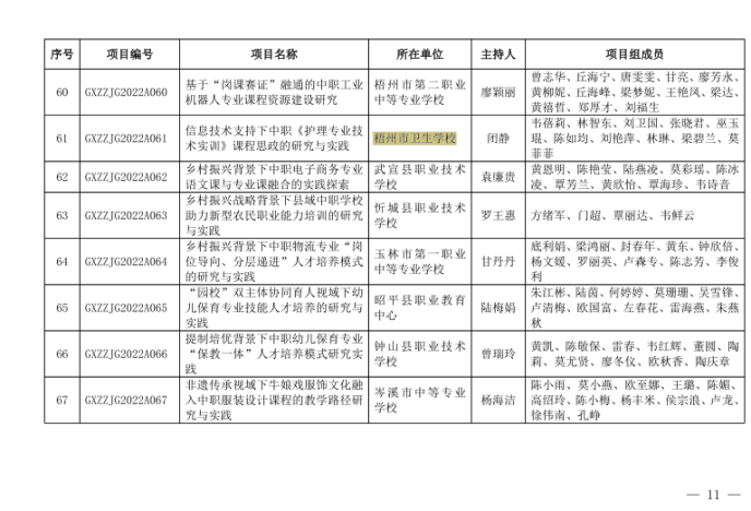 为进一步深化教育教学改革,加强内涵建设,提升教师教育教学研究水平,提高人才培养质量,我教学部积极申报2022年广西职业教育教学改革研究项目,获重点立项1项,一般立项2项。