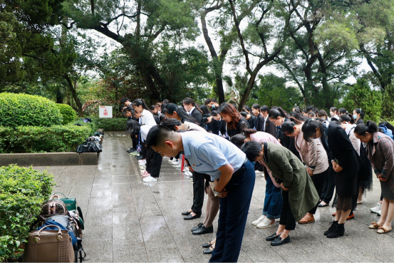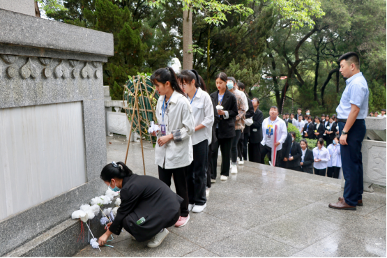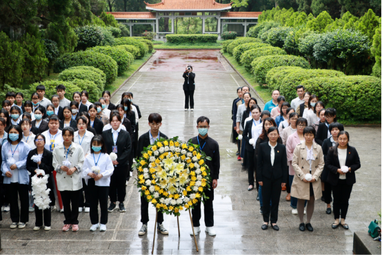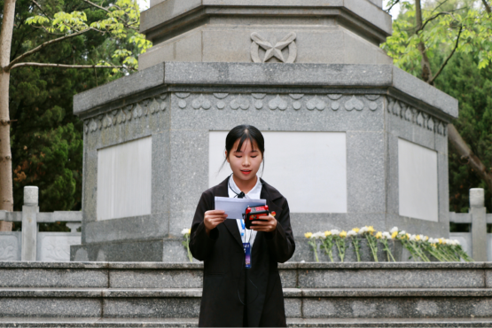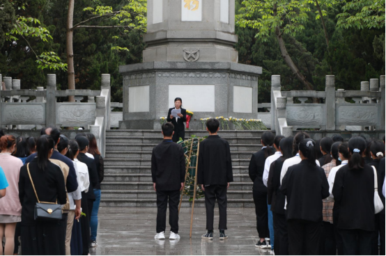 伴随着庄严的国歌,全体师生在庄严肃穆的烈士墓前肃立默哀,向烈士纪念碑敬献花圈,表达对烈士的崇高敬意和深切悼念之情。