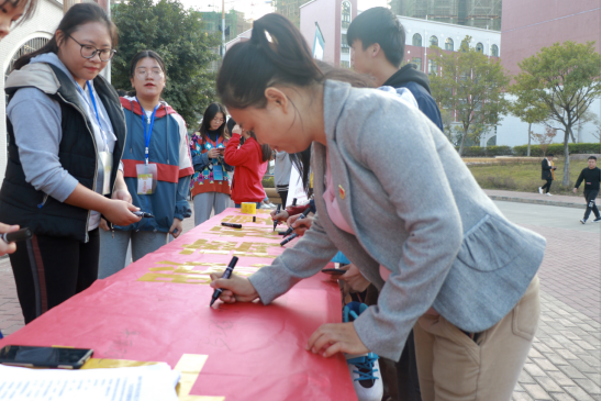 系部主任罗卫群、副主任冼秋霞亲笔在宣传横幅上签字做表率
