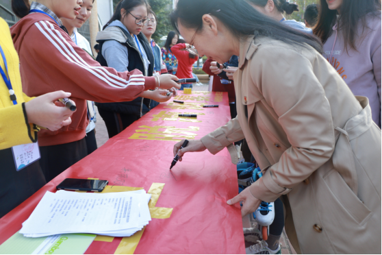 活动通过各班级举行“校园禁烟”主题班会、校园摆点宣传烟草危害、宣读禁烟倡议书、师生签署校园禁烟承诺书等形式举行。让广大师生了解吸烟的危害和影响,自觉远离烟草、拒绝烟草。在签名活动中,系部领导、老师们、同学们都积极参与其中,争做“禁烟先锋”,紧紧30分钟就收集了500余个签名。