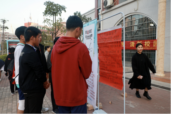 为贯彻落实《教育部关于在全国各级各类学校禁烟有关事项的通知》(教基函[2014]1号),推进文明校园、和谐校园、无烟校园建设,为广大师生员工营造文明、健康的学习、工作环境,积极响应和落实学院禁烟工作要求,卫生职业教育部于2020年12月1日在三期校区举行“无烟世界 清新校园”为主题的校园禁烟教育宣传活动。