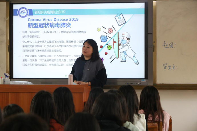 辅导员霍永妍老师在班会上讲授新冠肺炎防控知识