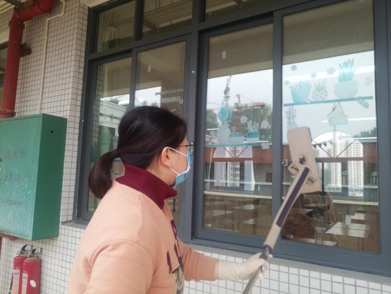 卫职部全体辅导员及教师在上完网课的课余时间,纷纷回到校园中,开始进行教室清洁与整理。老师们积极响应,走入教室,清扫地面、摆放桌椅、贴好座位标签、擦窗户、拖地板,将两栋教学楼共29间教室打扫得干干净净,为同学们开学有序上课做好了布置。