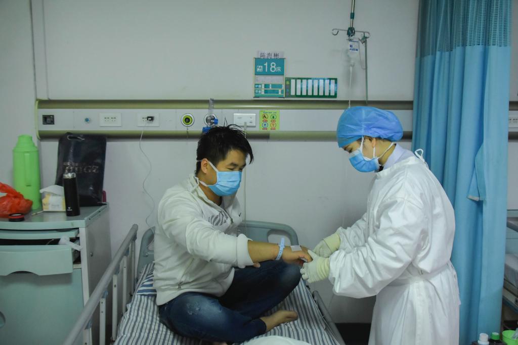 由于防护服有限,黄金丽只在进行抽血、吸痰等高危操作时才能穿上防护服,平时对疑似病例的护理,只能穿普通的护士服。问她怕吗?她笑笑说:“守护病人是作为护士的使命职责所在,由不得你怕。”
