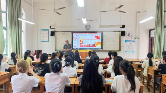 5月4日上午,卫生健康学院学生党支部书记张南在西校区1栋103教室为入党积极分子、团干代表讲授以“发扬五四精神,勇担时代使命”为主题的党课。