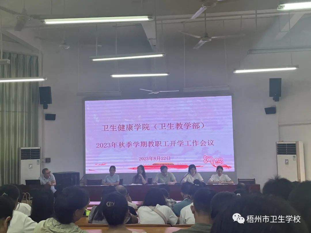 8月22日上午,卫生健康学院(卫生教学部)召开2023年秋季学期开学工作会议。全体教职员工齐聚学校圆形教室,共迎新学期,踏上新征程。