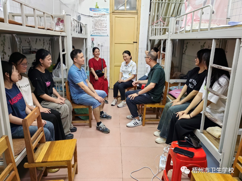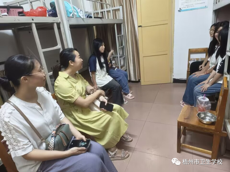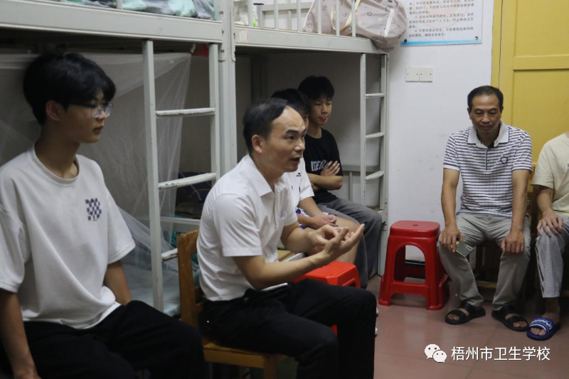 夜幕降临,学院领导仍心系初到的新生们,在卫生健康教育党委书记,院长(部长)关广荣的带领下,卫生健康学院(卫生教学部)领导班子成员深入学生宿舍探望同学们,及时了解新生入学状况并解决新生生活上需要解决的问题。关书记和学生亲切交流,询问生活适应情况、专业选择情况、学业规划情况等,鼓励同学们要增强学习专业的信心,坚定人生出彩的决心。