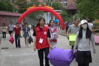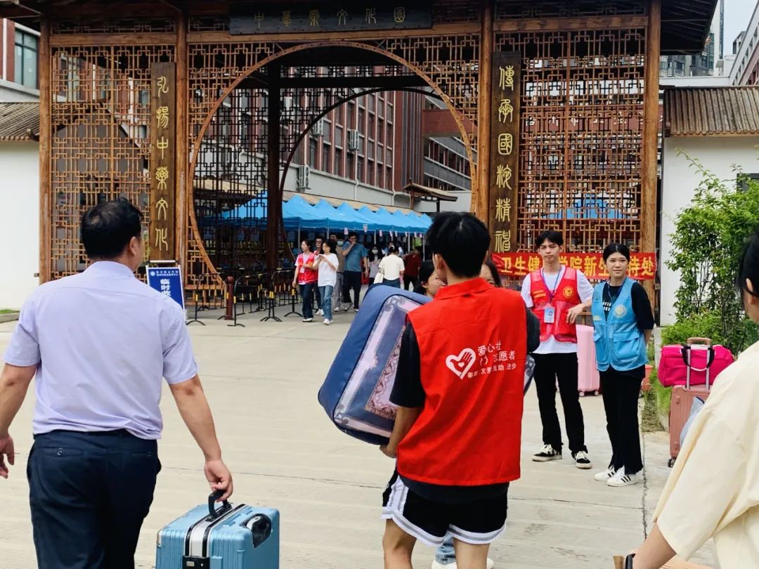 迎新现场气氛热烈,人头攒动。志愿者们各司其职,尽职尽责地维护现场秩序。 他们积极“捕捉”新生身影,主动上前,协助新生们搬运行李,悉心介绍校园文化、讲述规章制度,分享学习经验,以释惑之清泉,浇灌新途之花。他们用自己的实际行动,给新生们提供无微不至的帮助和支持,诠释了“奉献、友爱、互助、进步”的志愿精神,成为了新生们的引路人和知心朋友,也化为了卫健院最亮丽的风景线之一。