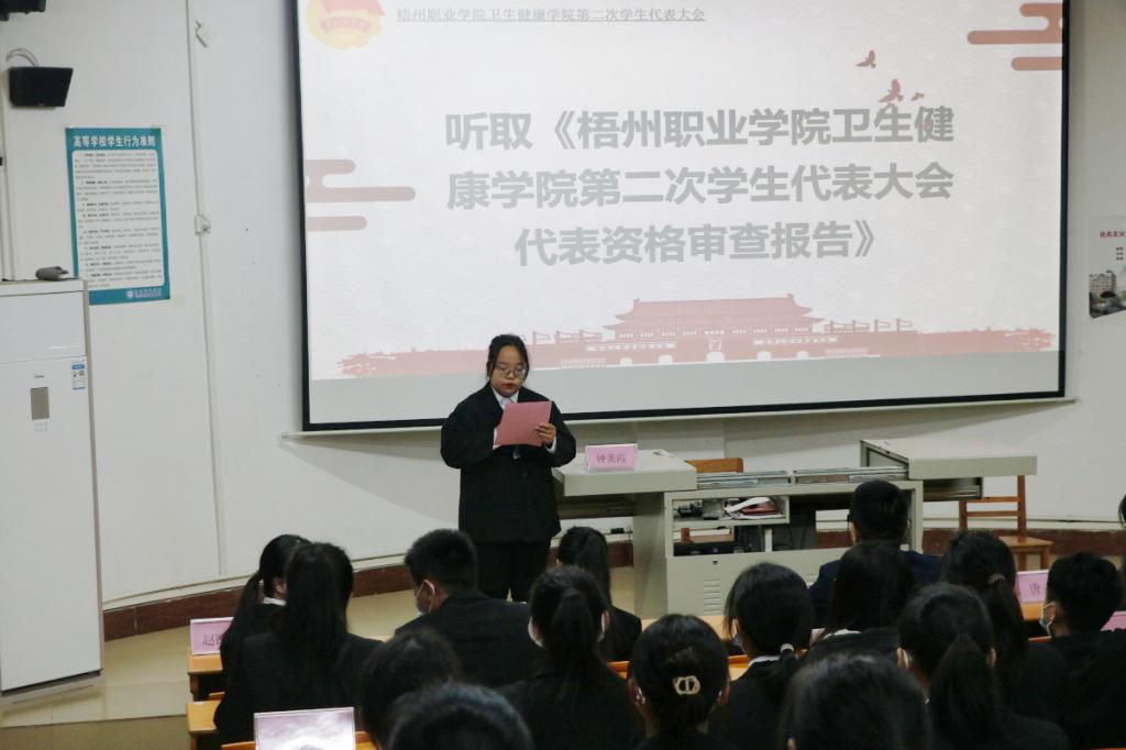 会议第六项议程,听取钟美霞《beat365英国官网网站卫生健康学院第二次学生代表大会代表资格审查报告》