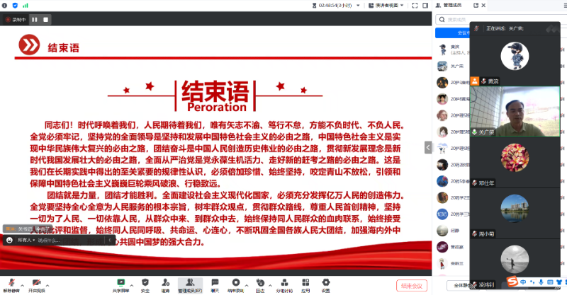 接着由卫生健康学院(卫生教学部)副院长闭静授课,主题为“深入学习贯彻党的二十大精神奋力推进健康中国建设”,通过对党的“二十大精神”的解读,让全体党员积极响应为全面建设社会主义现代化国家、全面推进中华民族伟大复兴而团结奋斗的伟大号召。作为卫生职业教育工作者,在校内办好专业建设,以课程思政为抓手,提高思政育人质量;在校外进一步加强校企合作,推动产教融合培养师生工匠精神。