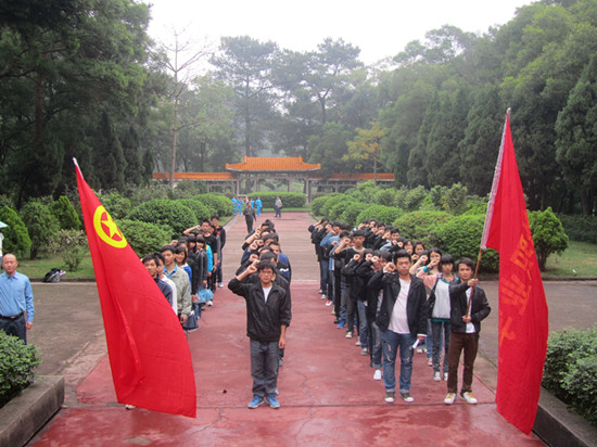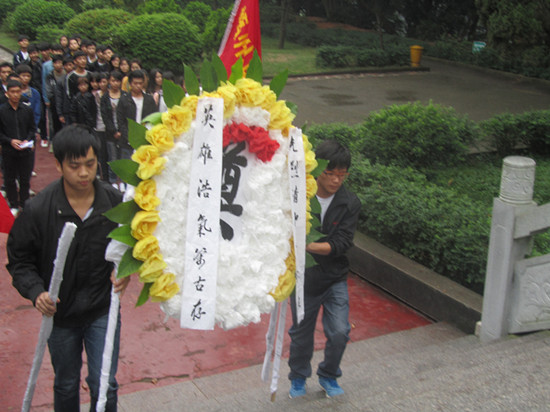 为深入学习宣传贯彻党的十八大精神,缅怀革命先烈,传承优良传统,弘扬爱国主义精神,倡导文明新风。4月1日下午,学院学工处、团委组织入党积极分子、学生干部代表50多人来到珠山烈士陵园祭扫烈士墓,并向烈士墓敬献了同学们亲手制作的花圈。
