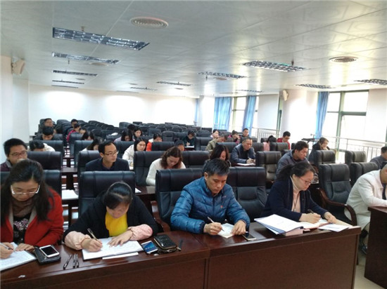 李少成介绍了广西区艾滋病疫情的基本情况,并对学院(中心)的“防艾”工作作了具体部署。(文/摄影 霍思明)