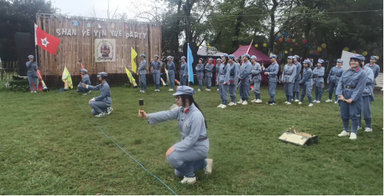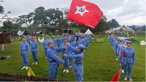 11月12日上午,研学团在桂林市全州县龙水安陂聚龙生态园换上了红军服、戴上了红军帽、扛上了模拟战斗装备,在教官的指导下,进行了列队、练兵、检阅等情景教学,模拟演练了强渡湘江、碉堡防敌等战斗场景,真真切切上了一堂不一样的“历史课”。虽然阴雨绵绵,但同学们以实际行动诠释着“流血流汗不流泪,掉皮掉肉不掉队”的精神,展现了梧职学子有理想、敢担当、能吃苦、肯奋斗的昂扬姿态。