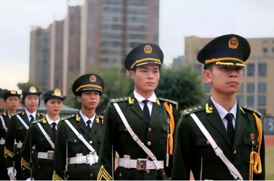 伴随着分列式进行曲,2023级的4个营,82个连开始接受检阅,在国旗护卫队的带领下,各连的方队迈着坚定的步伐,喊着嘹亮的口号,精神饱满、斗志昂扬地向主席台走来,充分展现2023级新生在军训中取得的优秀成果及梧职人的精神风采。