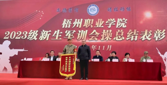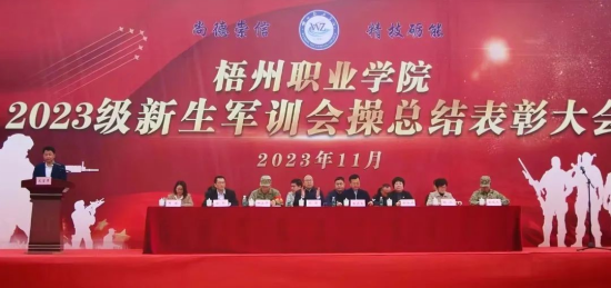 大会在庄严的国歌声中拉开序幕。长洲区人民武装部副部长杨森华在会上讲话。他代表长洲区人民武装部和全体参训教官,对此次军训的圆满成功表示祝贺,对同学们连日来克服种种困难、重重考验认真完成军训任务予以充分肯定,并表示在同学们身上看到了“尚德”“崇信”“精技”“砺能”的校训精神,看到了梧职学子焕发的蓬勃朝气,看到了祖国的未来和希望。他希望每名同学都能把军训期间培养的好思想、好作风,好习惯带到以后的学习生活中、带到今后的人生旅途中,树立远大的理想抱负,为国家和社会做出自己应有的贡献。