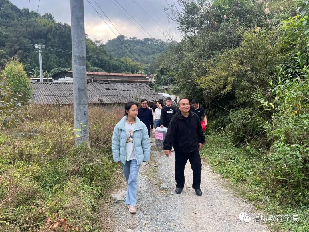 为进一步加大对家庭经济困难学生的关心和了解,加强家校联系。12月13日下午,教育学院党总支书记黄二一、书记院长助理李明运、六堡茶产教融合学院(广西众意教育科技有限公司)陈总、辅导员陶柳桢、卢碧珊、蒋俊彦、肖晓媚,班主任龙旭林、黄天行一行9人前往梧州龙圩镇社学村、广平镇西罗村走访两名经济困难的秦同学、钟同学家中进行走访慰问,为她们送上爱心慰问品与学校的关怀。