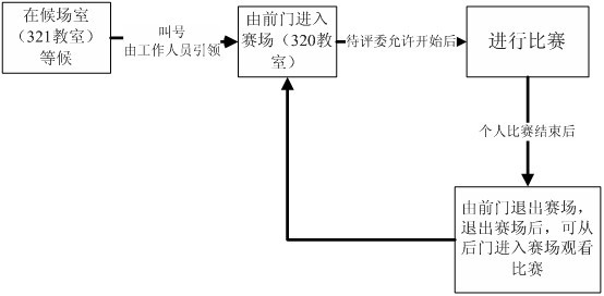 3. 比赛完的选手可从前门退场后,从后门进入赛场观看比赛(比赛流程图如下图所示)。