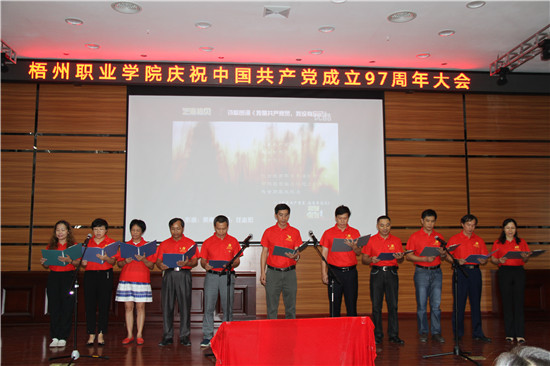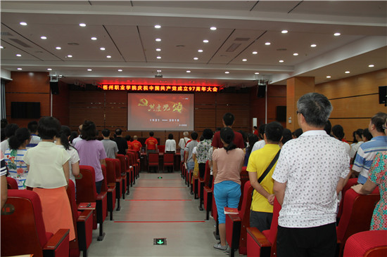 6月27日下午,学院(中心)在报告厅隆重举行庆祝中国共产党成立97周年大会。学院党委书记张凌贞出席并讲话,党委副书记、院长聂振传出席大会,党委副书记、纪委书记梁军主持大会,党委委员、副院长皮至明,党委委员、副院长陈森英,党委委员、党政办主任胡江枫出席大会,学院(中心)各基层党组织负责人,部门负责人,全体党员,离退休党员代表,社区党员代表等300余人参加了大会。