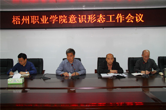 梁军传达了自治区高工委27日召开的2018年全区第二季度意识形态形势分析研判会的精神。学院有关部门负责人结合本校实际情况,就近期意识形态工作进行具体部署。
