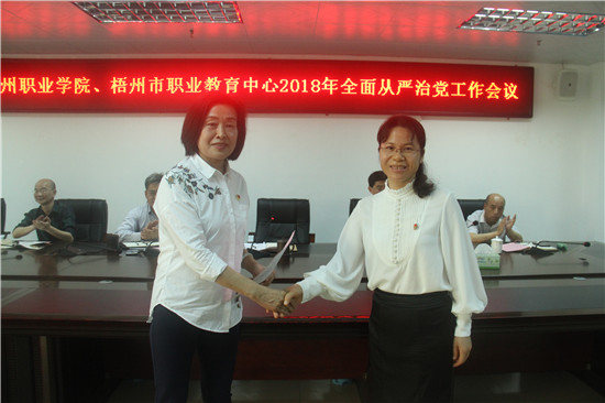 学院党委书记张凌贞做重要讲话,并代表党委与基层党组织负责人签订2018年全面从严治党工作目标责任书,学院党委副书记、院长、职教中心主任聂振传主持会议,学院党委副书记、纪委书记梁军做有关会议精神传达,党委委员、副院长、职教中心副主任皮至明,党委委员、党政办主任胡江枫出席会议。
