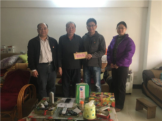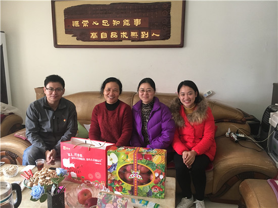 在“春节”来临之际,为表达对离退休党员的关怀和关心,切实落实好离退休党员的政治、生活待遇,在机关支部副书记文禹的带领下,机关支部于1月26日走访慰问了本支部离退休党员白合连及宋家美,并送去了牛奶、水果以及慰问金。 慰问代表们与退休党员们亲切交谈,详细了解老同志离退休后的生活情况,感谢他们对本支部工作的支持。同时代表本支部全体党员向老同志致以亲切的节日问候与美好祝愿,希望老同志们在保证心情愉快、身体健康的前提下,继续发挥老同志的余热,老有所为,老有所乐,继续关心和支持教育工作。在此祝福他们节日愉快,健康长寿,合家幸福! 离退休老干部对支部一直以来的关怀和重视表示衷心的感谢;对beat365近年来所取得的成绩感到欣慰,并表示将一如既往地支持配合beat365的教育工作。(文、摄影/李海娟)