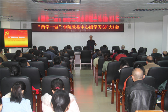 12月19日,学院召开“两学一做” 党委中心组学习(扩大)会议。会议邀请了中共湖北省委委员、湖北省委决策顾问、中共湖北省委党校常务副校长马哲军教授做了题为《做“讲奉献有作为”的合格党员》的专题讲座。学院党委书记张凌贞出席并主持了会议。学院院长聂振传、党政办主任胡江枫等在家的领导班子成员出席了会议。