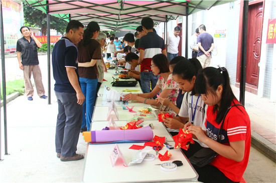 当天上午,学院各基层党组织和各中职学校组成了一个庞大的服务队和宣传队,来到“双报到”共建单位红岭社区驻地,开展义务为民服务和职教宣传活动。活动现场,十多顶帐篷一字排开,师生们摆开阵势忙碌起来,或提供饮食卫生和心理健康咨询,或宣传车辆使用与保养知识和建筑工程安全防护知识,或解释招生就业政策,或提供家用电器维修服务,或展示学生实训工件和手工技能,或进行茶艺表演……丰富多彩的活动内容,吸引了不少社区居民。现场一派热闹景象。