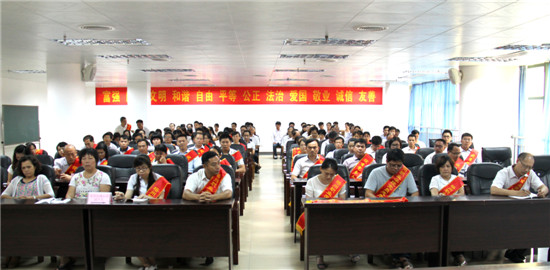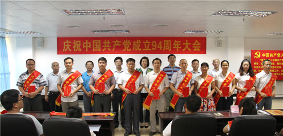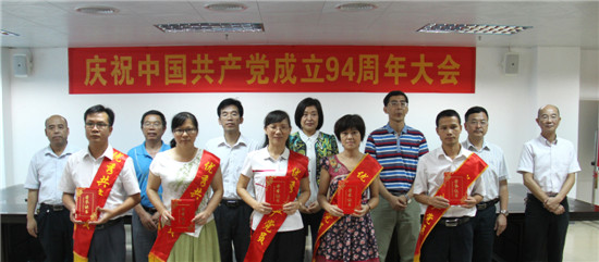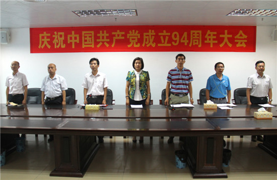 6月29日,学院(中心)隆重召开会议,纪念中国共产党成立94周年,举行新老党员宣誓仪式,表扬先进党组织和先进个人,为党员先锋岗授牌。会议要求全体党员践行“三严三实”标准,充分发挥党员先锋模范作用,贯彻落实党风廉政建设责任制,以崭新的精神风貌和过硬的工作作风把学院(中心)建设好。