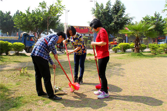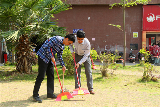 学院院长聂振传(右)在清洁社区环境