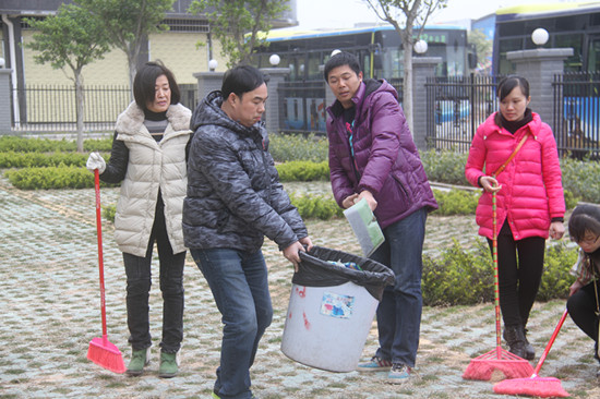 1月9日下午,校园内,新梧州高中前马路旁,闪动着学院(中心)党员教师们忙碌的身影。党员教师们放下教鞭,走下讲台,拿起扫帚,扛起锄头,参加清洁校园、清洁街道统一义务劳动,为建设美丽校园和美丽梧州添砖加瓦。 根据学院(中心)统一安排,学院(中心)所有基层党组织均参加了本次活动。活动采取分片包干,落实责任的原则。党员义工们热情高涨,积极投入到了义务劳动中。一时间,校园内,新梧高前马路旁,党员义工们清运垃圾,疏通沟渠,忙得不亦乐乎。在一些卫生死角,遇到难以清理的垃圾,党员义工们不怕脏累,干脆直接用手把垃圾清理干净。 据粗略统计,参加活动的党员义工超过400人,共清扫面达到400亩,大大改善了校园和校园周边的卫生环境。