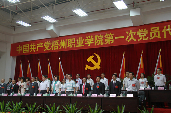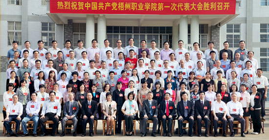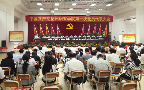 黄振饶在讲话中指出,学院办学五年以来,特别是2010年由民办变更为公办的两年以来,学院党委在市委、市政府的正确领导下,团结奋进,克难攻坚,努力推进职教资源整合工作,在探索中高职一体化和集团化办学、服务梧州经济社会发展等方面取得了明显成绩,为我市将丰富的人口资源转化为优质的人力资源做出了重要贡献。这次大会是在全市认真全面贯彻落实党的十八大精神,全力推进承接东部产业转移、扎实开展五园八区建设、实现我市产业跨越发展的关键时期召开的,意义非常重大,影响非常深远。他寄语全体代表认真履行职责,全力以赴地开好本次大会;希望学院、中心的第一届党委班子要站在服务全市经济发展的高度,团结带领广大党员和全体师生员工进一步开创各项工作的新局面,为办好让梧州人民满意的职业教育做出新的更大的贡献。