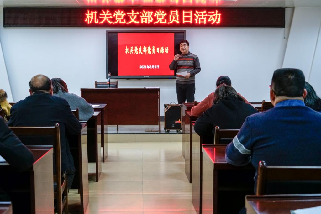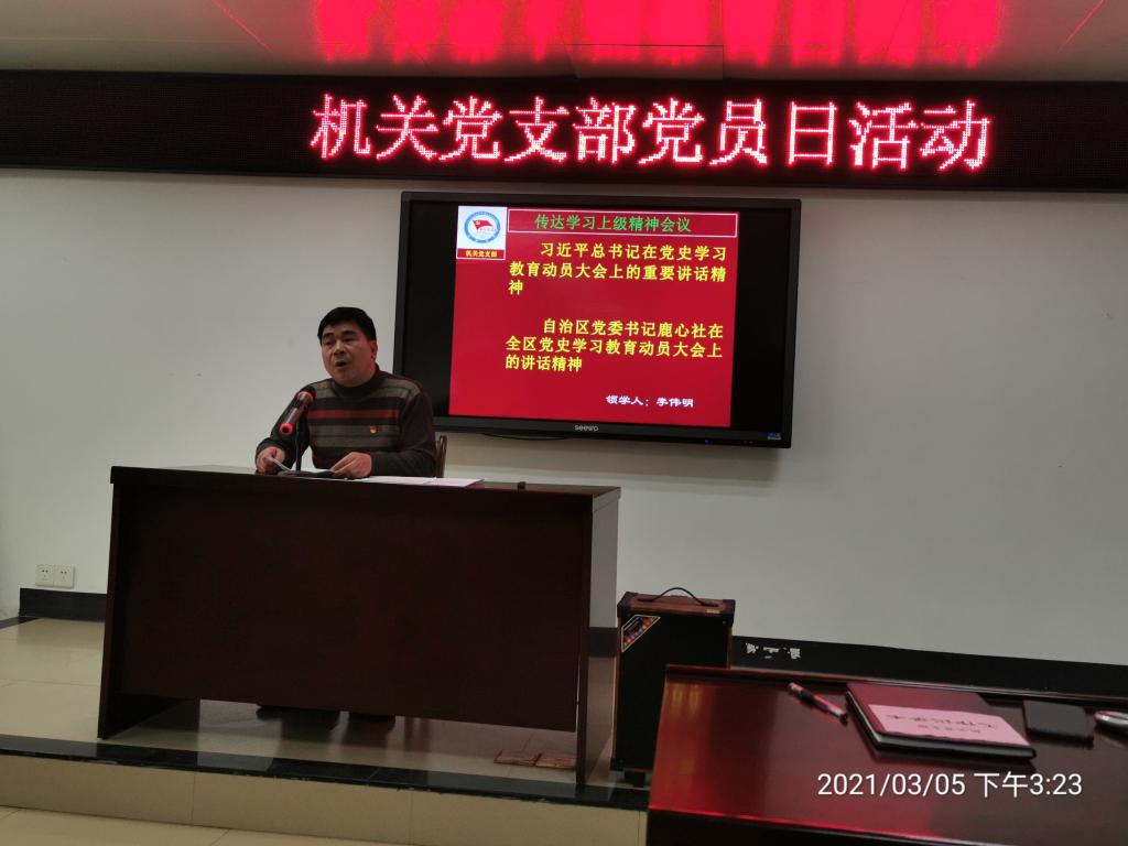 3月5日是党员活动日,机关党支部举行党员大会,传达学习中央、自治区、梧州市有关会议精神,部署近期工作。党支部副书记李伟明主持会议并带领学习。