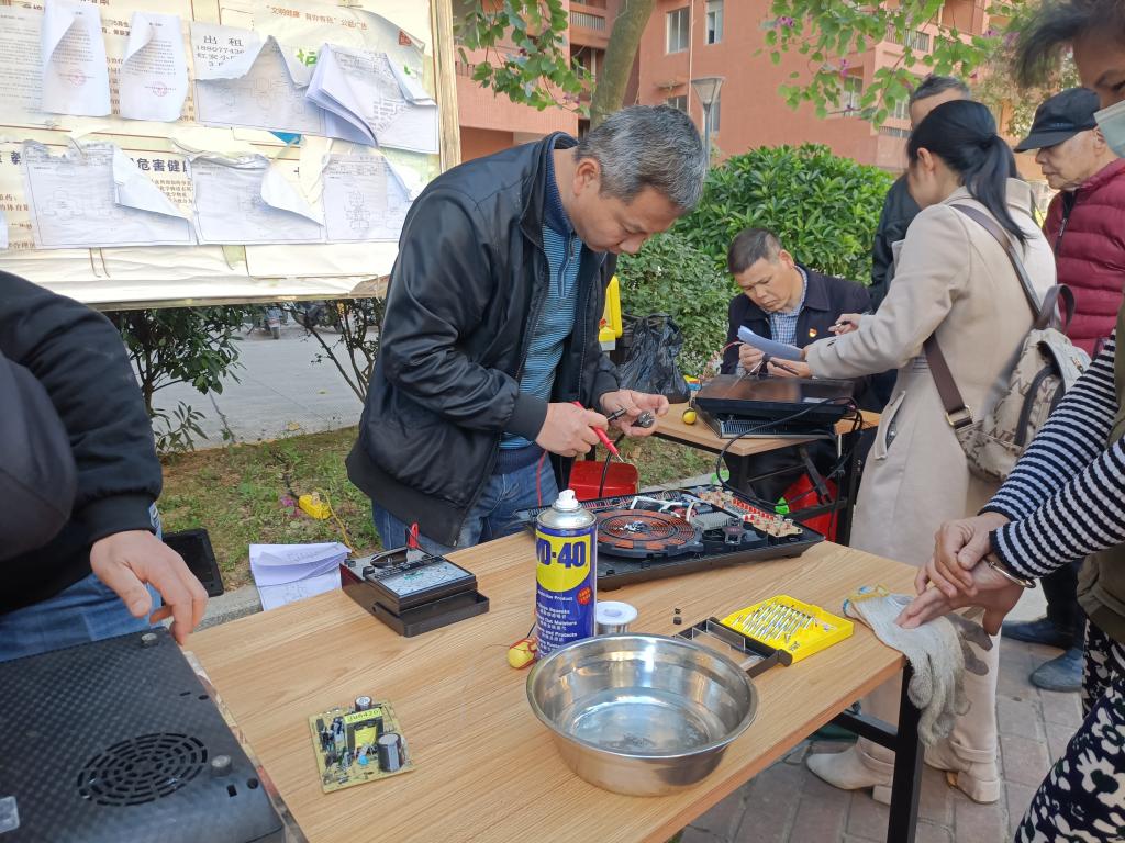 本次活动,主要开展家电维修、贴手机膜、小区卫生清扫等便民利民志愿服务活动,用心解决群众的困难事、烦心事。活动中,有居民带着家中小电器前来维修,维修人员仔细检查并询问家电损坏的情况,细心地修理每一部小电器,竭尽所能为前来的社区居民解决电器故障。同时还有党员向社区居民介绍如何安全使用家用电器、节约能源,避免在使用过程中因不恰当地使用方法造成伤害及损失。