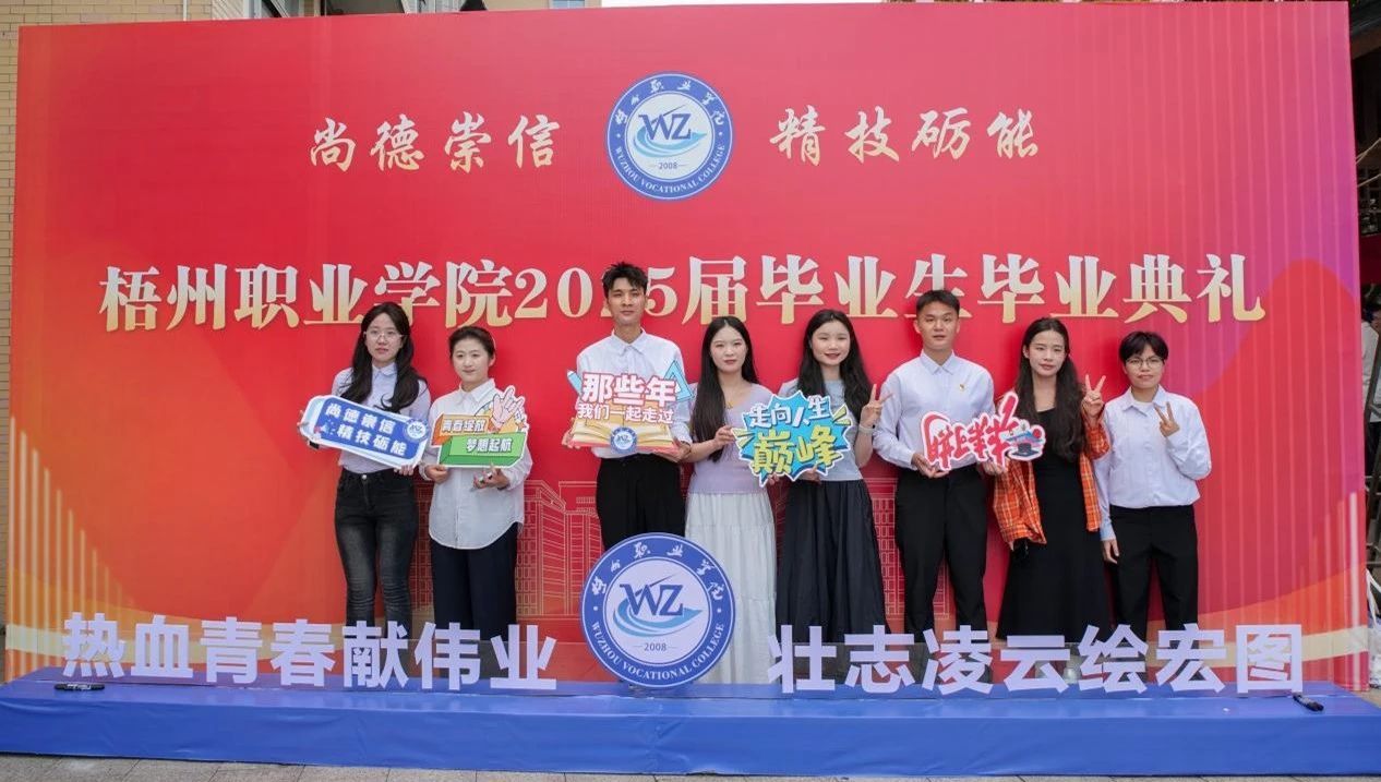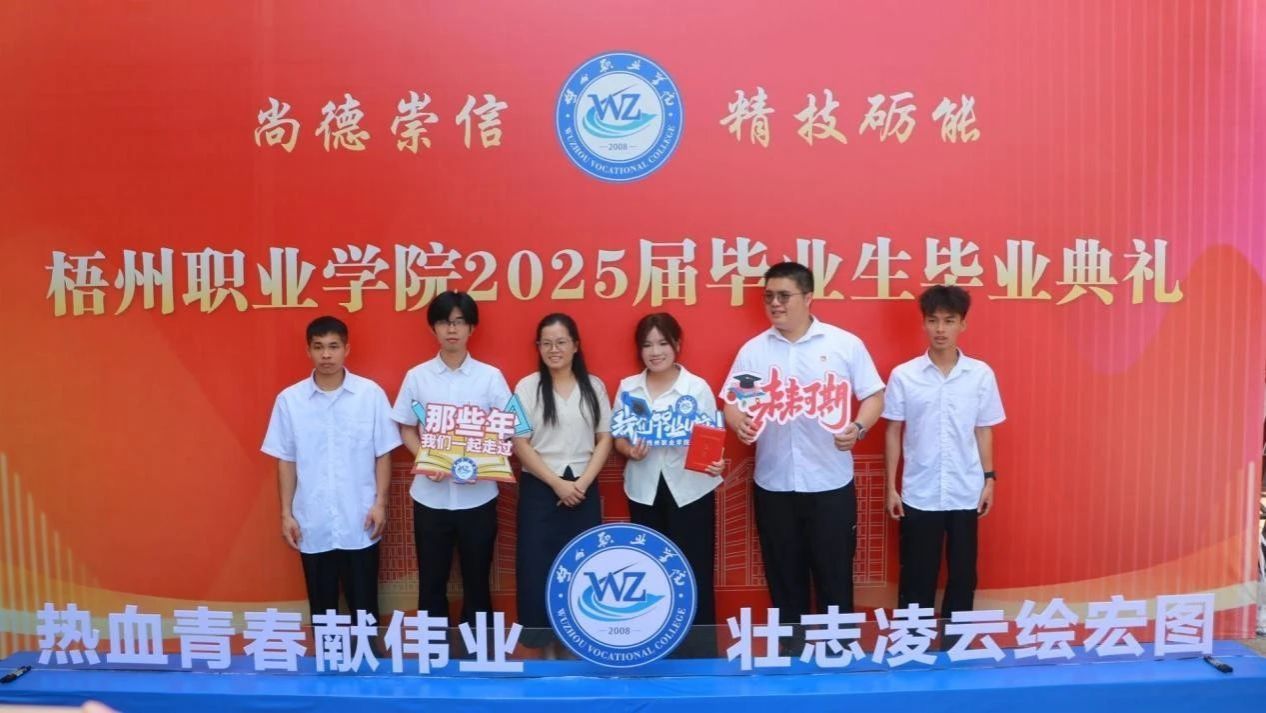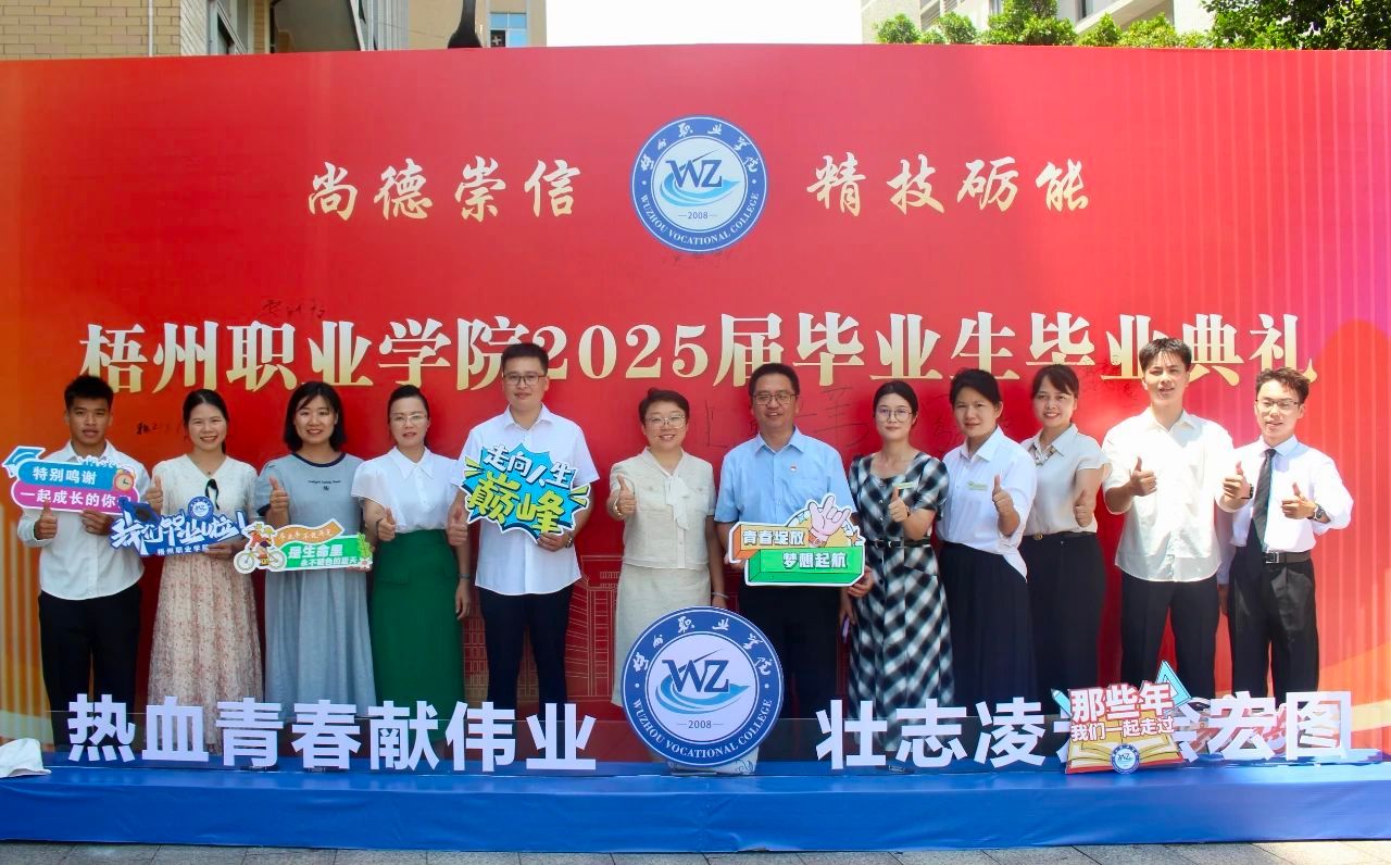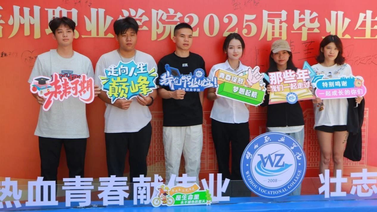 卫生健康学院(卫生教学部)施秋桃老师、商学院辅导员韦晓筱老师为2025届毕业生们送上最真挚的祝福。两位老师表示同学们皆用实际行动诠释了“技能成才”的真谛,展现了新时代梧职学子的风采。希望同学们保持学习的热情,坚守初心,心怀感恩,传递温暖,勇敢地去追逐梦想。在未来的道路上,披荆斩棘,乘风破浪,书写属于自己的精彩人生!