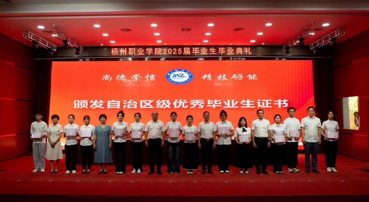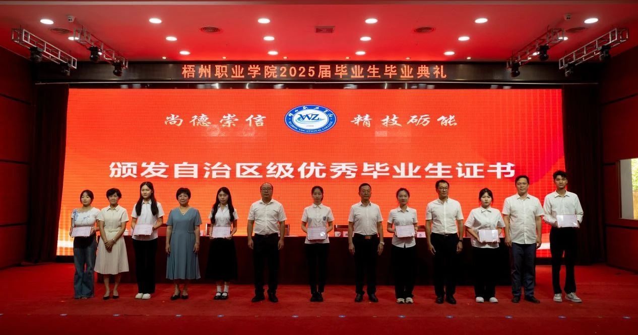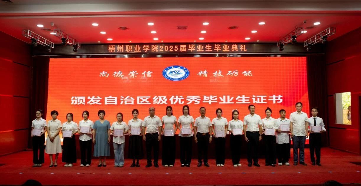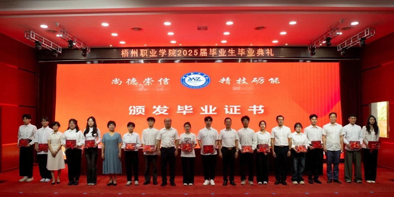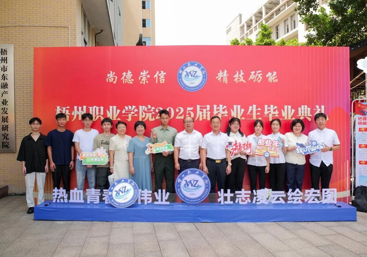 卫生健康学院(卫生教学部)施秋桃老师、商学院辅导员韦晓筱老师为2025届毕业生们送上最真挚的祝福。两位老师表示同学们皆用实际行动诠释了“技能成才”的真谛,展现了新时代梧职学子的风采。希望同学们保持学习的热情,坚守初心,心怀感恩,传递温暖,勇敢地去追逐梦想。在未来的道路上,披荆斩棘,乘风破浪,书写属于自己的精彩人生!