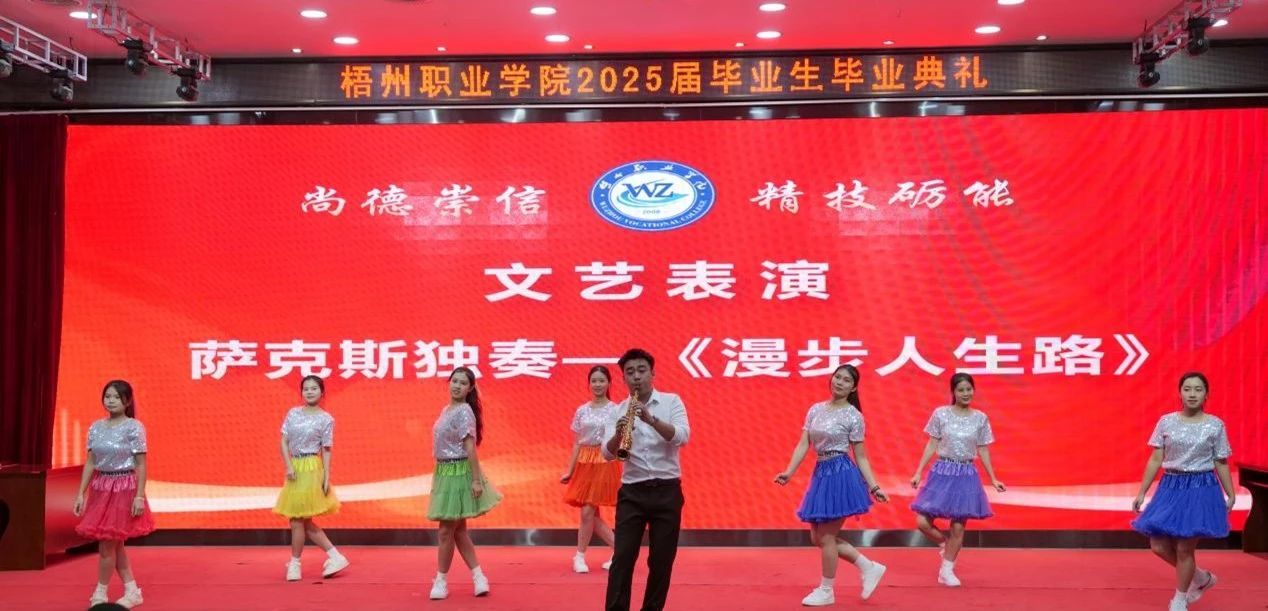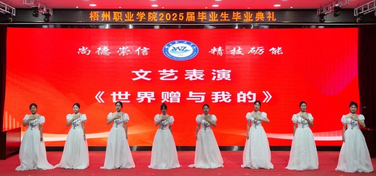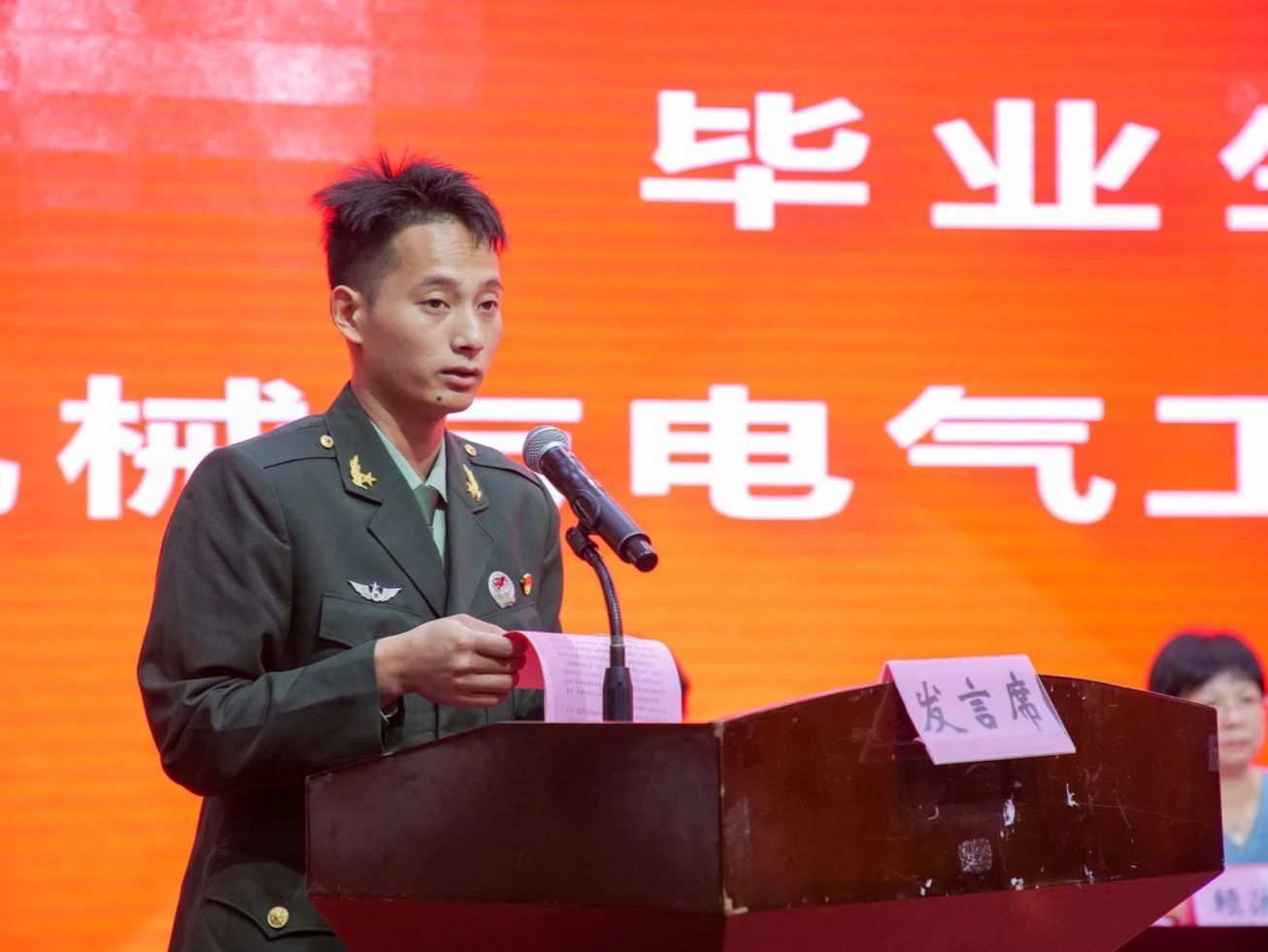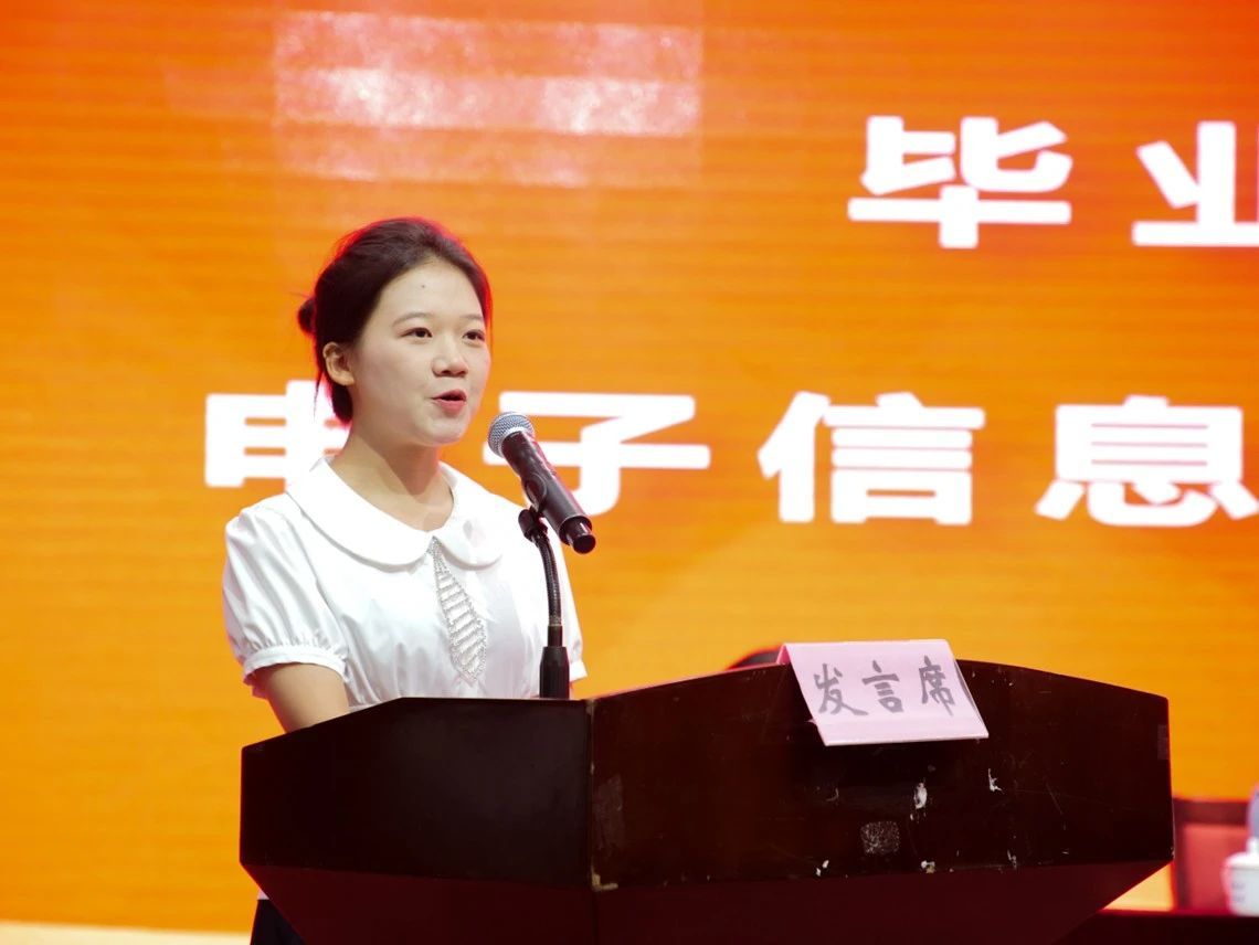 毕业生代表机械与电气工程学院郭宇强同学、电子信息工程学院卓苇同学发言分享了三年时间里的蜕变与收获。在这三年里,他们从迷茫到坚定,从生涩到从容。他们不仅学到了专业知识和技能,更学会了如何学习、如何思考、如何合作。他们在知识的熔炉里淬炼成钢,在实践的沃土中扎根生长。他们都是在书写“请党放心,强国有我”的青春答卷。最后,他们为全体师生送上最真挚的祝福:祝愿梧职基业长青,祝愿敬爱的老师们桃李芬芳,愿所有的毕业生们此去踏遍千山,归来仍是为家国热血的少年!
