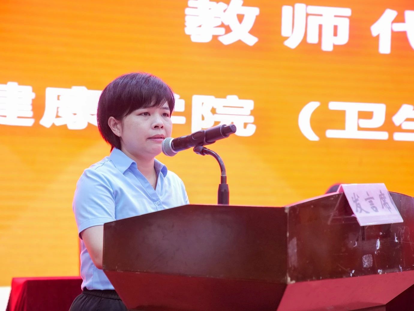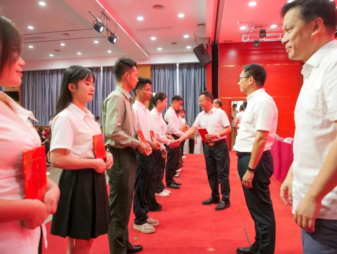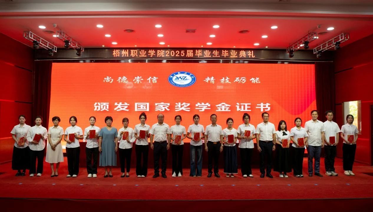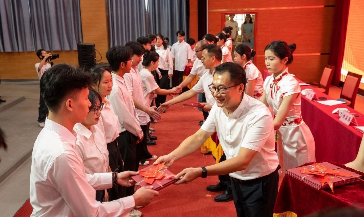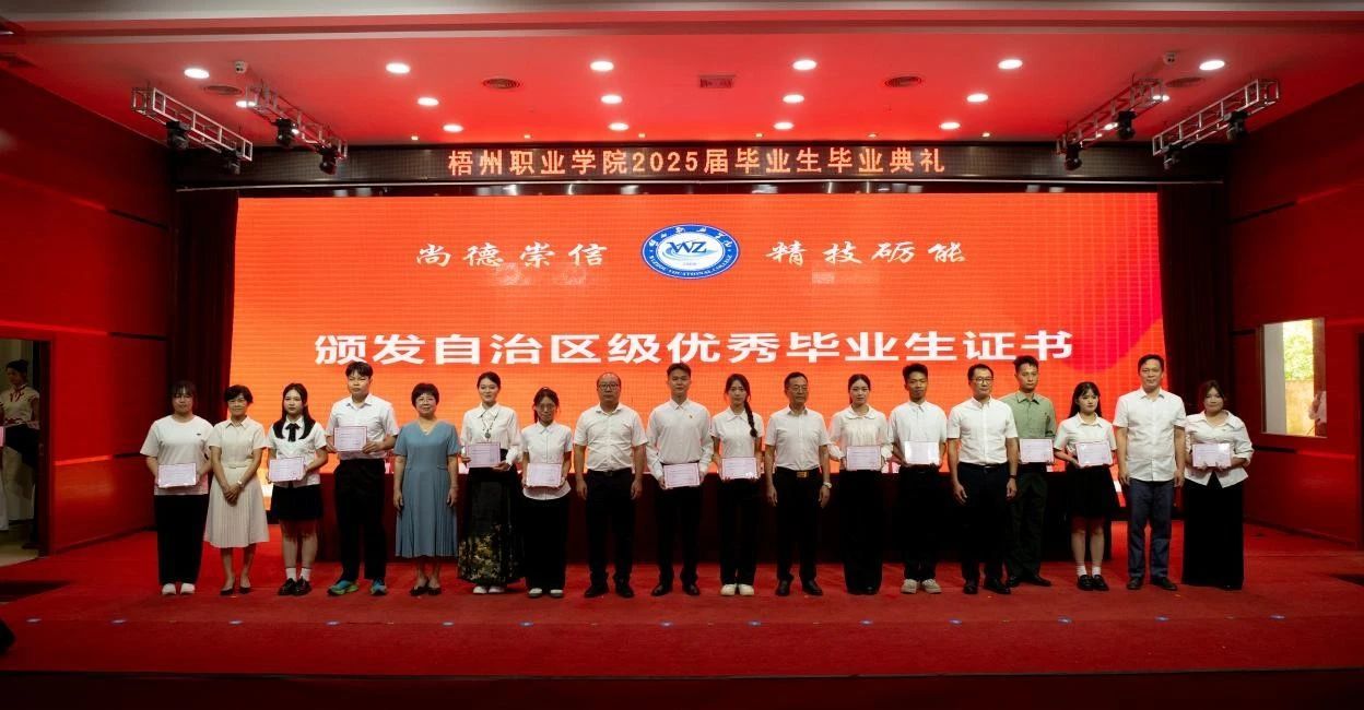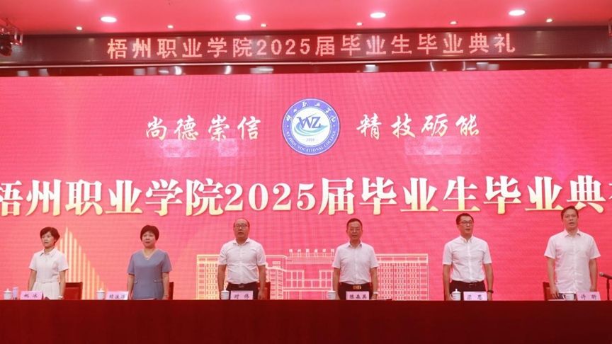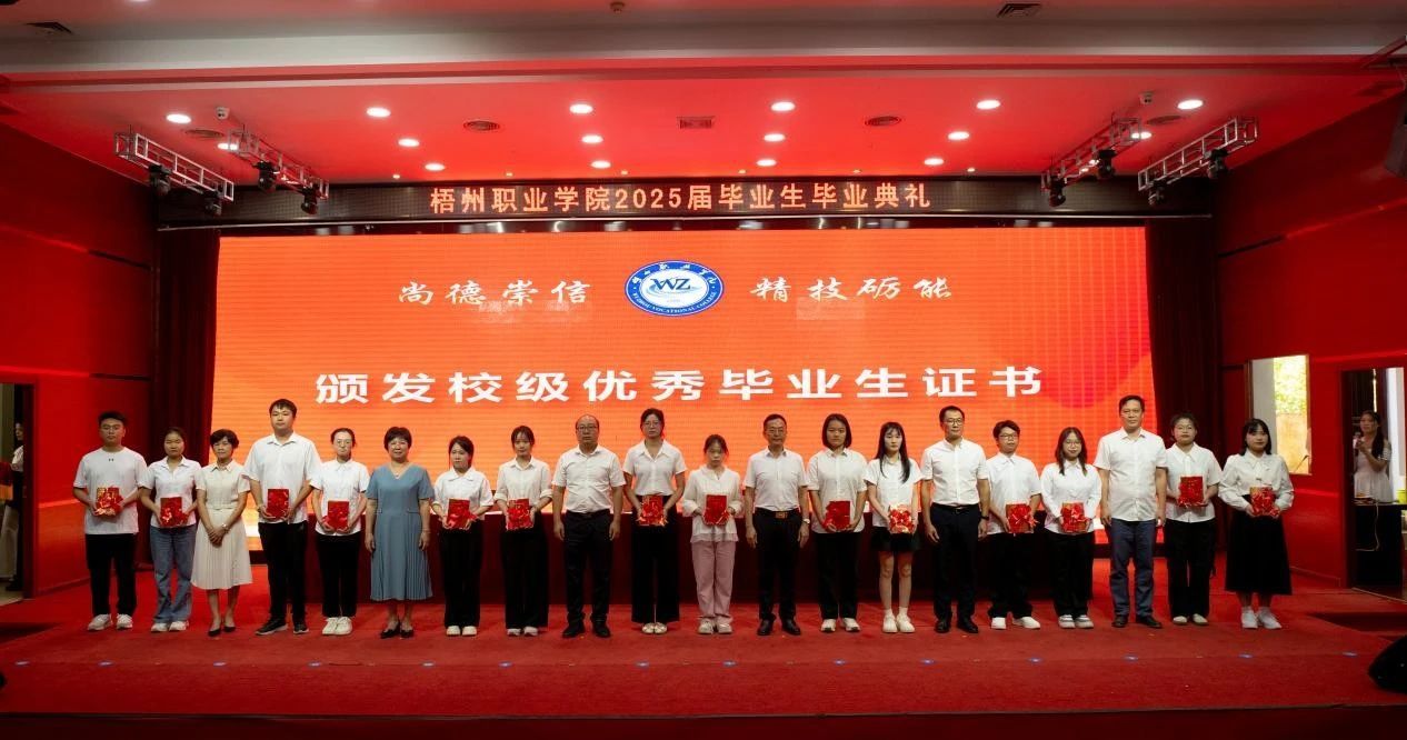 陈森英校长以《以青春之名 赴时代之约》为题作毕业寄语,陈校长说,同学们始终以行动践行着梧职“尚德崇信、精技砺能”的校训,在青春的舞台上,书写着属于自己的精彩篇章;希望大家以“尚德崇信”为人生之舵,让家国情怀照亮前行之路;以“精技砺能”为奋进之桨,在终身学习中勇立时代潮头;以“笃行实干”为远航之帆,用脚下的泥土丈量理想的高度。希望大家在基层岗位上,耐得住寂寞、忍得住孤独、扛得住压力,相信每一次平凡的坚守,都是通往卓越的阶梯,用实干书写属于自己的辉煌。最后,陈校长与同学们分享对人生的感悟:生命的意义,不在于奔赴某个既定的终点,而在于认真对待每一段旅程。请大家铭记:没有不可跨越的经纬,只有永不停歇的潮汐。希望大家永远感恩父母、师长、亲友,感恩时代赋予的机遇与挑战,带着梧职的烙印乘风破浪,奔赴山海!以青春之名,书写无愧于时代的答卷!